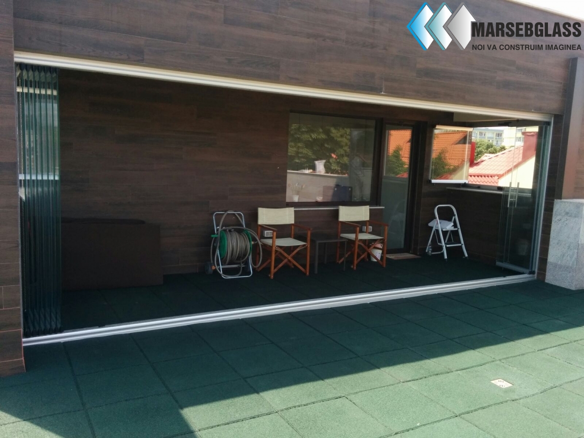 Compartimenteaza-ti spatiul optimizand salile in configuratia in care-ti doresti! Pur si simplu gliseaza panourile de sticla si imparti o camera in 2,  fiecare cu functionalitatea sa, iar atunci cand ai nevoie parcheaza panourile de sticla si revii inapoi la spatiul marit de dinainte